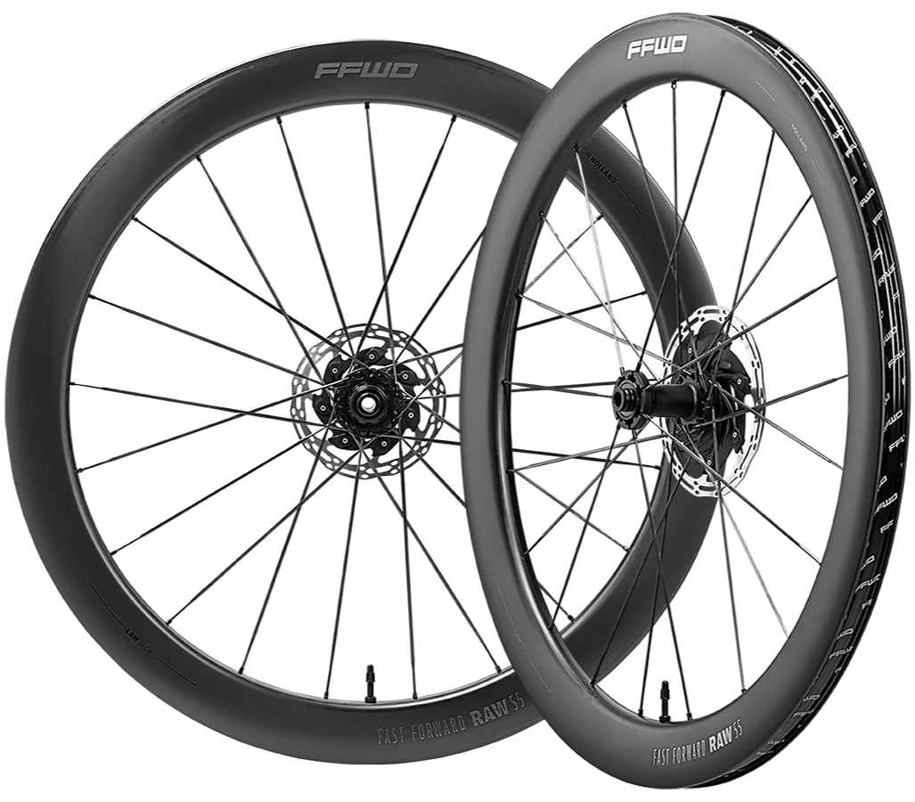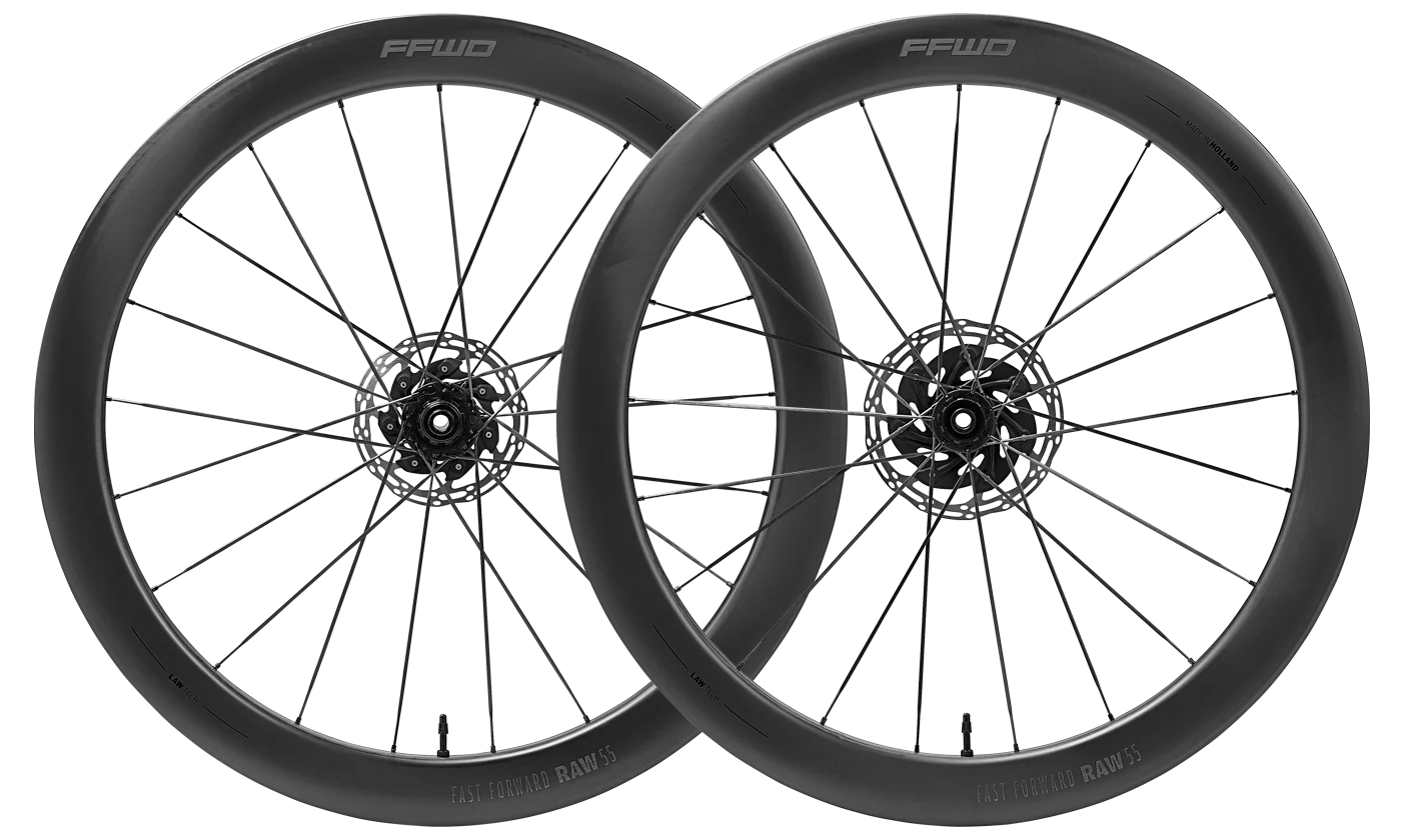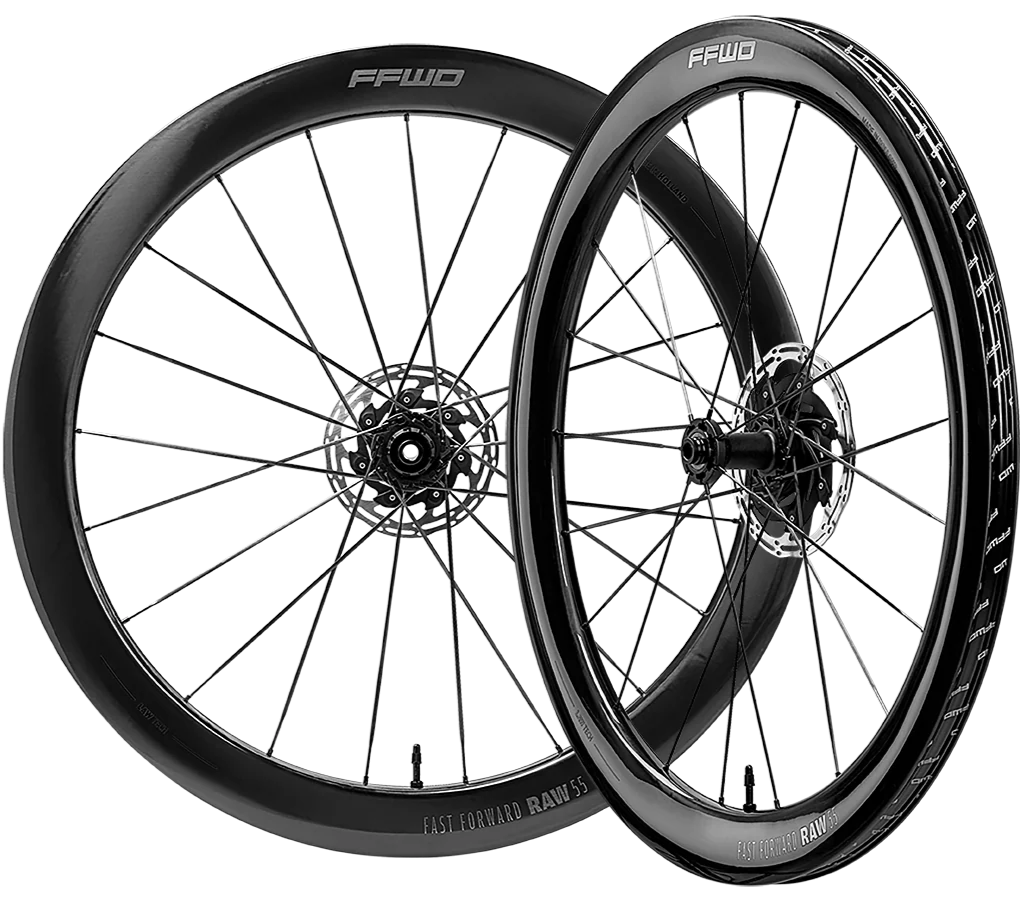 The result of the ultimate desire to combine looks and speed. The FFWD RAW 55 wheelset! The combination of carbon spokes and 55mm carbon rims delivers the perfect stiffness that converts power into speed. With a perfect weight in this category, you will quickly realize that there is only one way to go: fast forward!