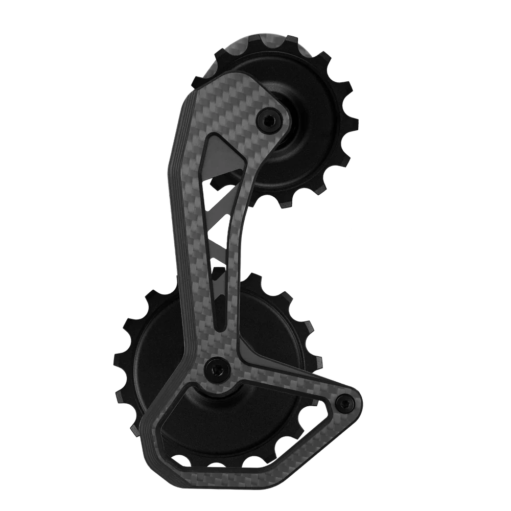 Leichter: Das Design des Karbonkäfigs und der Umlenkrollen wurde komplett überarbeitet, sowohl in Bezug auf die Geometrie als auch auf die Materialstärke, um ein Produkt mit einer moderneren visuellen Harmonie zu bieten und gleichzeitig seine Leichtigkeit und Leistung zu maximieren.